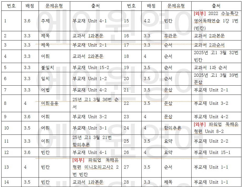| 2025년 2학기 기말고사 안동고등학교 1학년 영어 시험분석 및 적중사례 보고 (0) | 2025.12.24 |